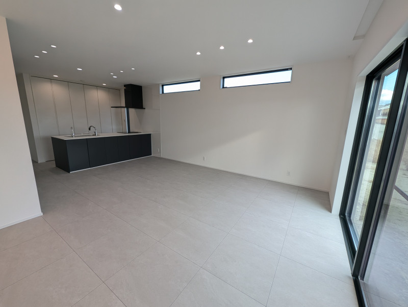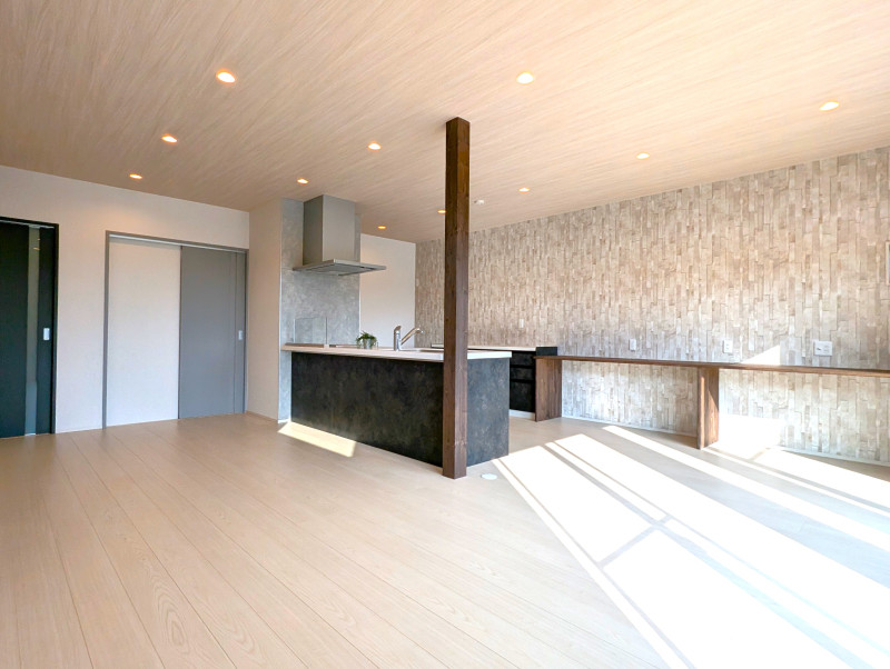 ミストグリーンの外観が街並みにやさしく映える、光と風を感じる住まい。大きな窓から自然光がたっぷり差し込み、開放的なLDKでのびやかな時間を。テラスでは季節の移ろいを感じながら、家族とのひとときを楽しめます。暮らしに、ちょっと特別な余白を。