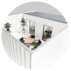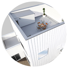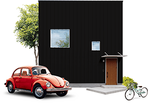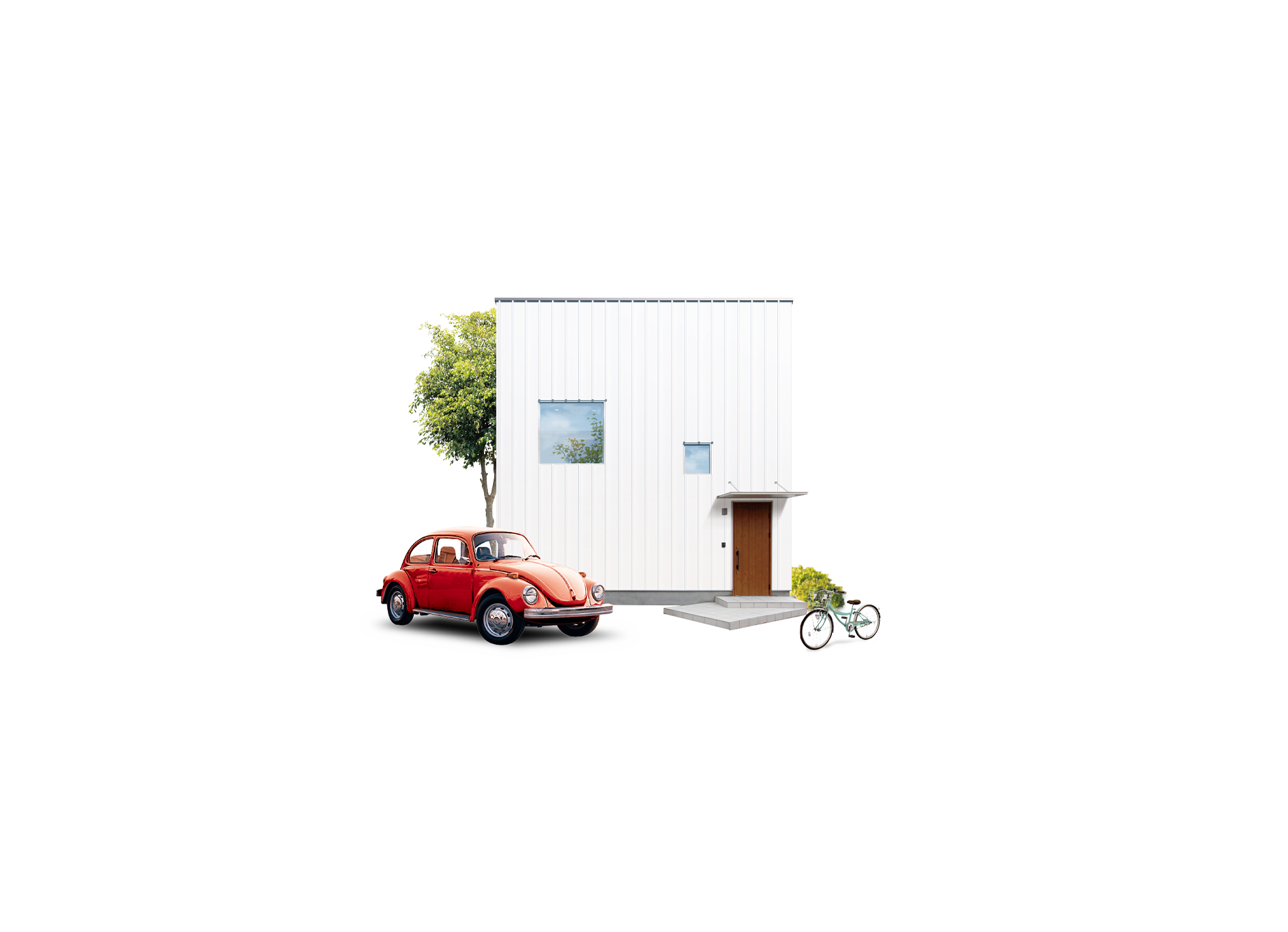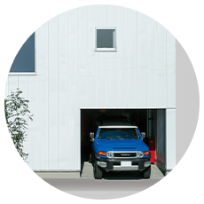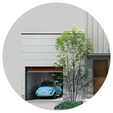 玄関から直接行き来できる便利なガレージをプラス。セキュリティはもちろん、クルマも雨ざらしになることもありません。屋上をバルコニーとしても無駄無く活用。「クルマは、もうひとりの家族」。そんな想いをカタチにできます。