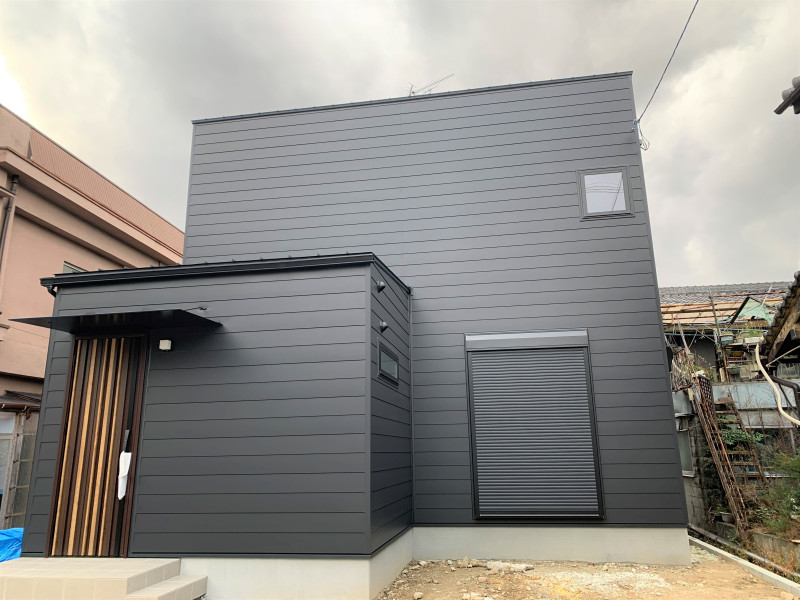 端正なキューブ型のフォルムに、マットな質感の外壁が静かな存在感を添える外観。 シンプルな構成の中に、奥行きと動きが感じられる佇まいです。 無駄を削ぎ落としたデザインが、街並みに凛とした印象を残します。