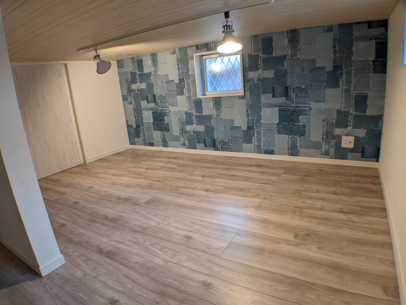 2階の洋室は、静けさと開放感が心地よいプライベート空間。 やわらかな色合いの天井と壁に、アクセントクロスがほどよく個性を添え、空間に奥行きをもたらします。 趣味や仕事に集中したり、ひとり時間を楽しんだりと、暮らしの自由が広がる場所です。