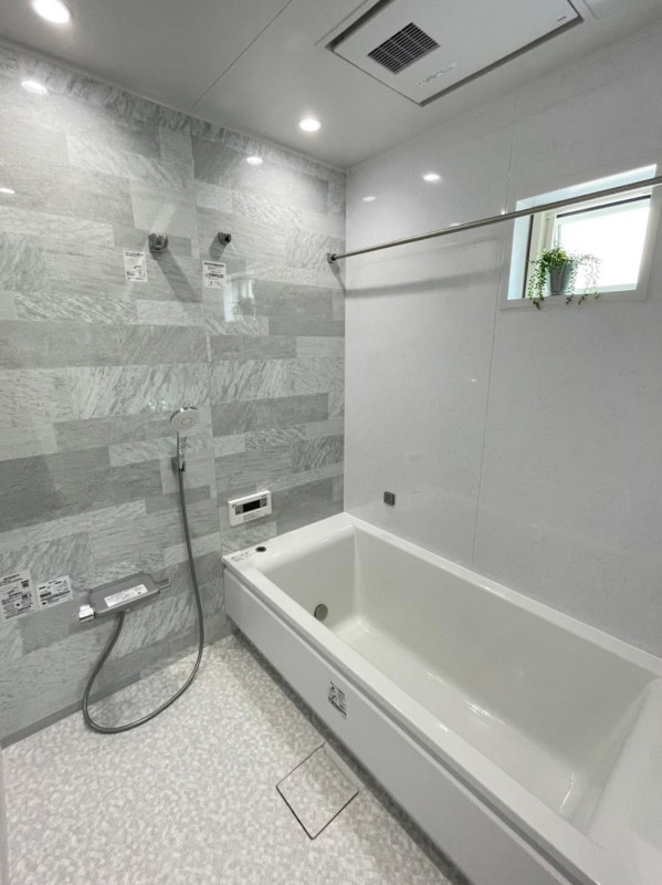 TOTOサザナ HTシリーズ〈Sタイプ〉を採用したバスルーム。 パティオホワイトのアクセントパネルが、空間にやわらかな明るさと清潔感を添えます。 毎日の疲れを、静かに癒してくれる場所です。