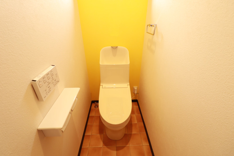 ZJ1仕様のトイレは、機能性と快適性を兼ね備えたスマートな一室。黄色のアクセントウォールが空間に明るさと遊び心を添え、毎日の使用がちょっと楽しくなるデザインです。清潔感のある白を基調に、すっきりとした印象に仕上げました。