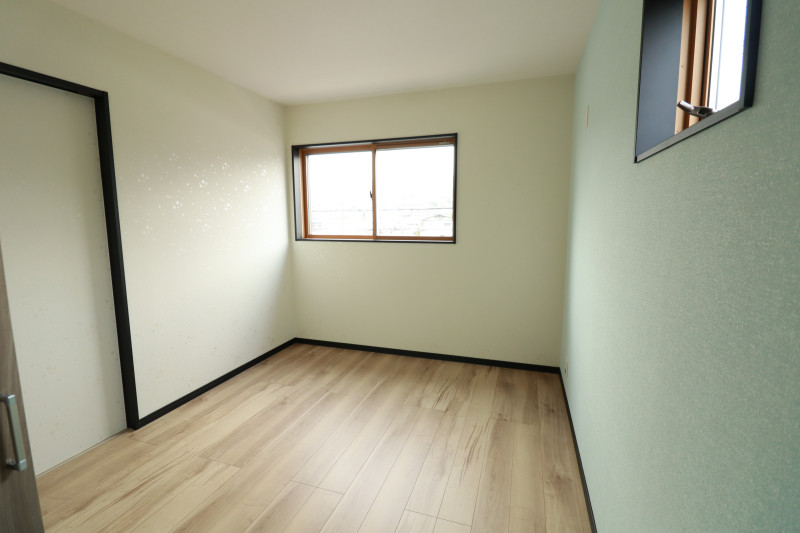 爽やかで落ち着きのあるクロスを採用し、心地よい癒しの雰囲気を演出しています。自然光と調和する柔らかな色合いは、お子さまのお部屋としてはもちろん、趣味やテレワークスペースにもぴったり。