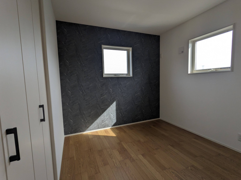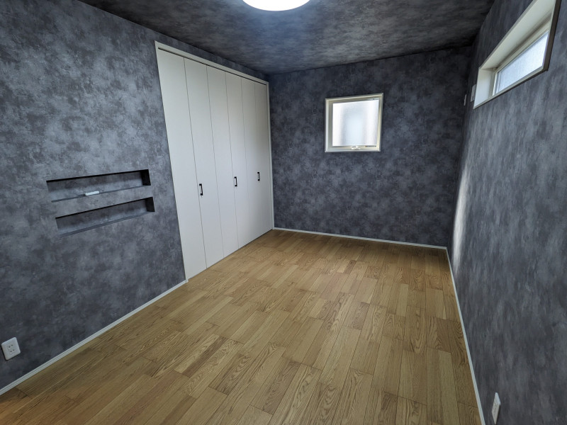 4.5帖の洋室は、落ち着いたトーンのアクセントウォールが空間に奥行きを与え、コンパクトながらも洗練された印象に。光の加減で表情が変わる繊細な質感が、シンプルなインテリアに上品なニュアンスを添えます。読書や趣味の時間を心地よく過ごせる、静けさと美しさが調和したプライベート空間です。