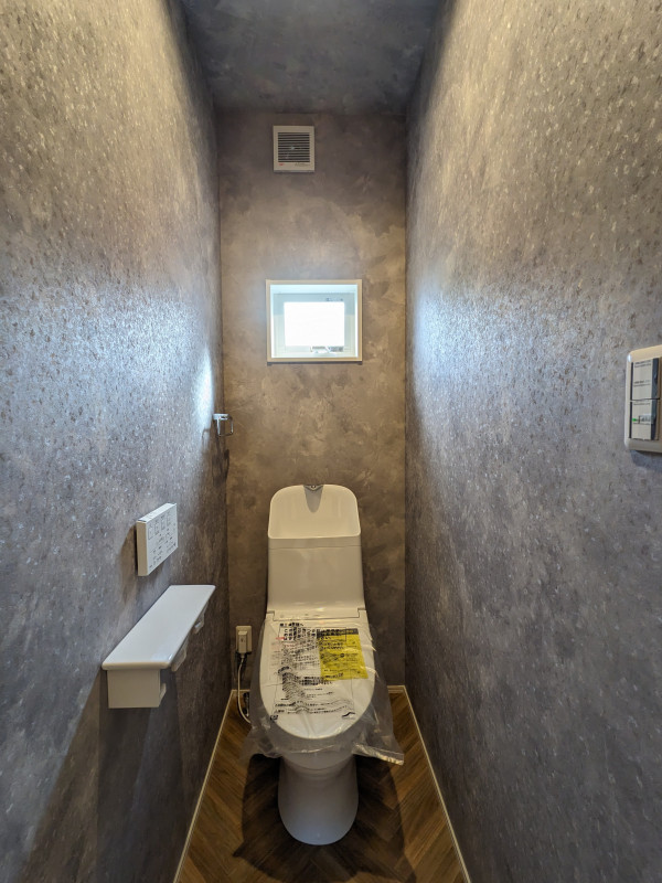 トイレZJ1は、グレイッシュな石目調のクロスが空間に落ち着きと洗練をもたらす上質な仕上がり。ほどよい陰影が壁面に表情を与え、コンパクトな空間でも奥行きと高級感を演出します。清潔感と静けさが調和した、日常に心地よさを添えるトイレ空間です。