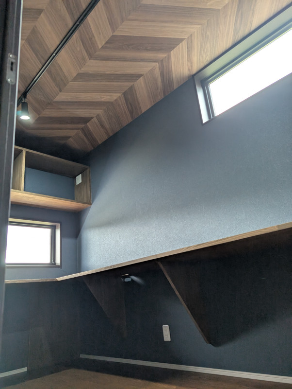 落ち着いたクロスにアクセントを添えた書斎。 冷蔵庫も置ける余裕があり、読書や趣味、集中した作業を快適に行える、自分だけの時間を楽しめる空間です。